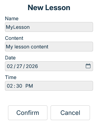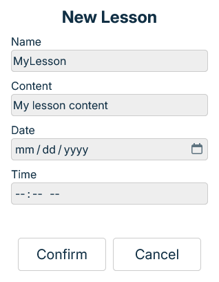 If everything was inputed properly the new lesson has been saved.