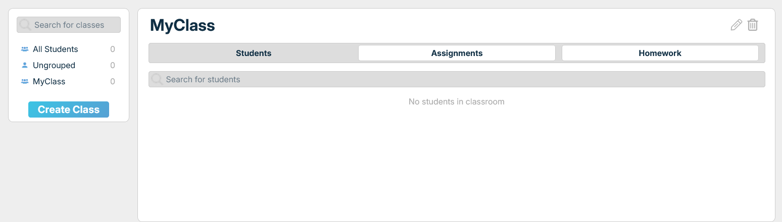 When you enter MyEasyClass you'll be presented with the initial screen.