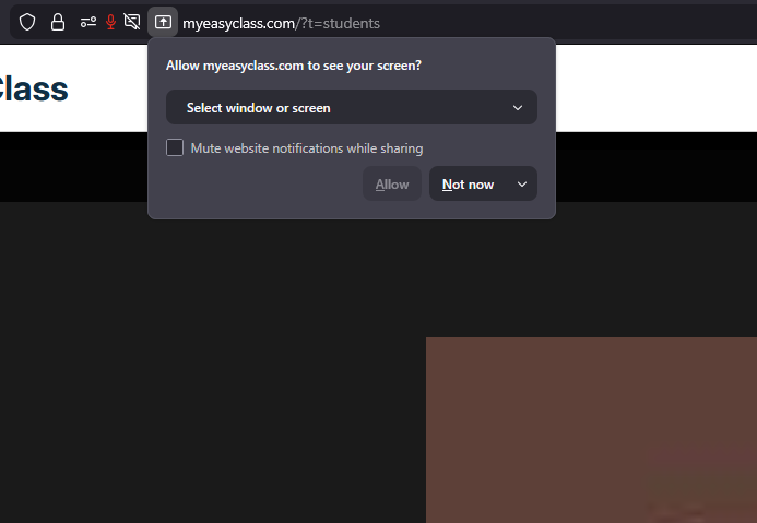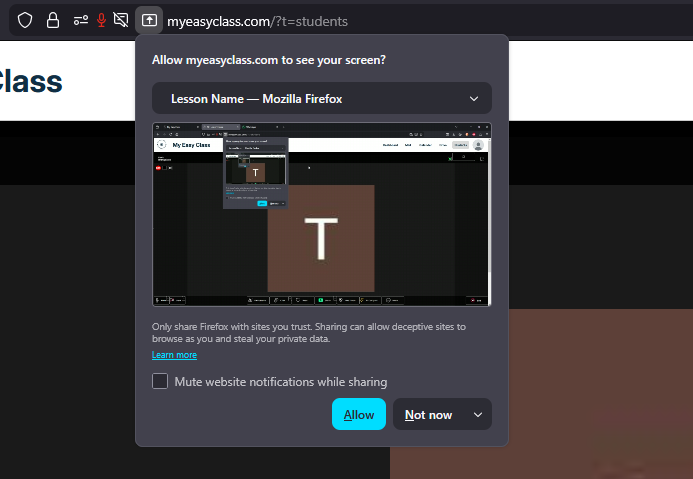 You will be prompted to select the video source for the screen sharing.