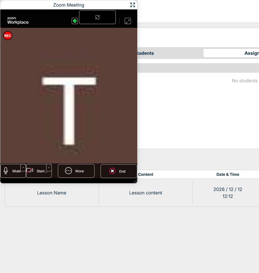 Click the "Start Lesson" button to begin the Zoom meeting.